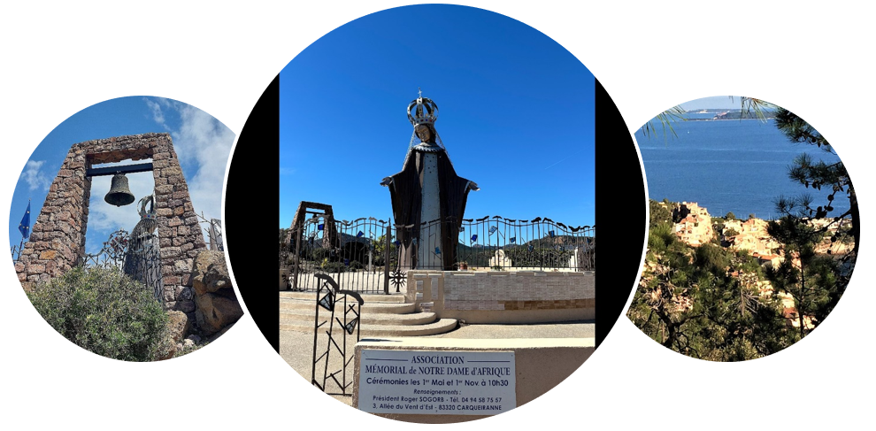 Denne dejlige Club Danois tur tager os fra kysten op i bakkerne hvor vi skal hilse på Notre Dame d’Afrique – statuen står meget flot med nyt kobber og blyindfattet glas efter omfattende restaurering.