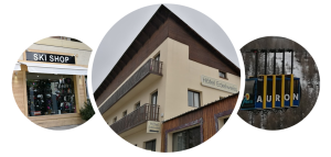 Ski og støvler kan lejes i en af de mange udlejningsforretninger, der ligger i nærheden af hotellet.